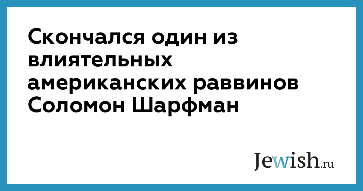 Скончался один из влиятельных американских раввинов Соломон Шарфман