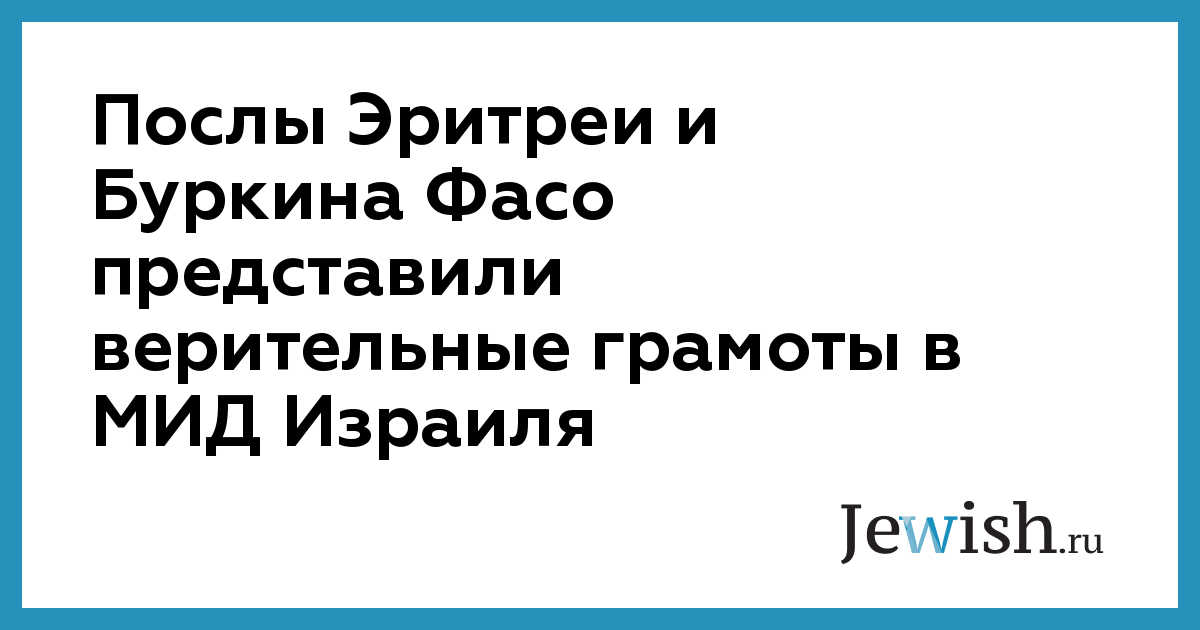 Посол Эритреи Тесфамариам Текесте Деббас и посол из Буркина Фасо Софи Соу, представили в четверг свои верительные грамоты в израильском МИДе, сообщает газета Jerusalem Post.