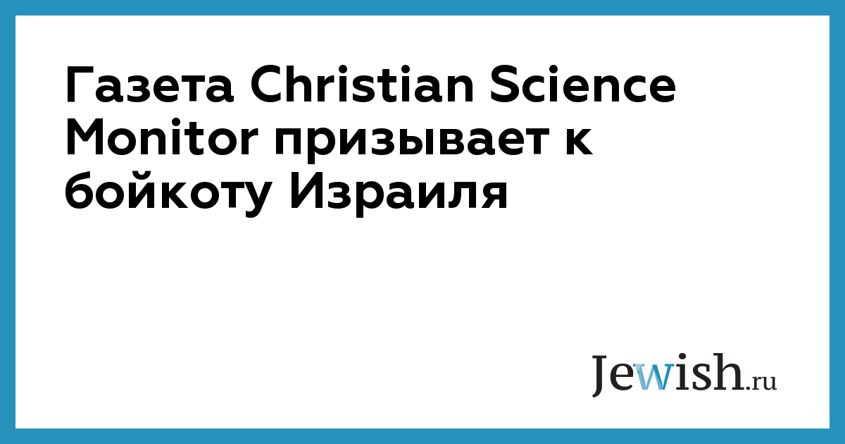 Газета Christian Science Monitor призывает к бойкоту Израиля