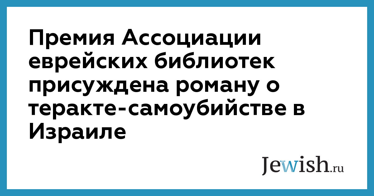 Премия Ассоциации еврейских библиотек присуждена роману о теракте-самоубийстве в Израиле