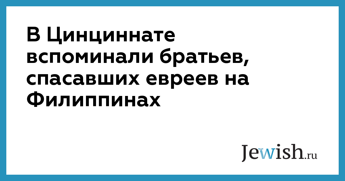 В Цинциннате вспоминали братьев, спасавших евреев на Филиппинах