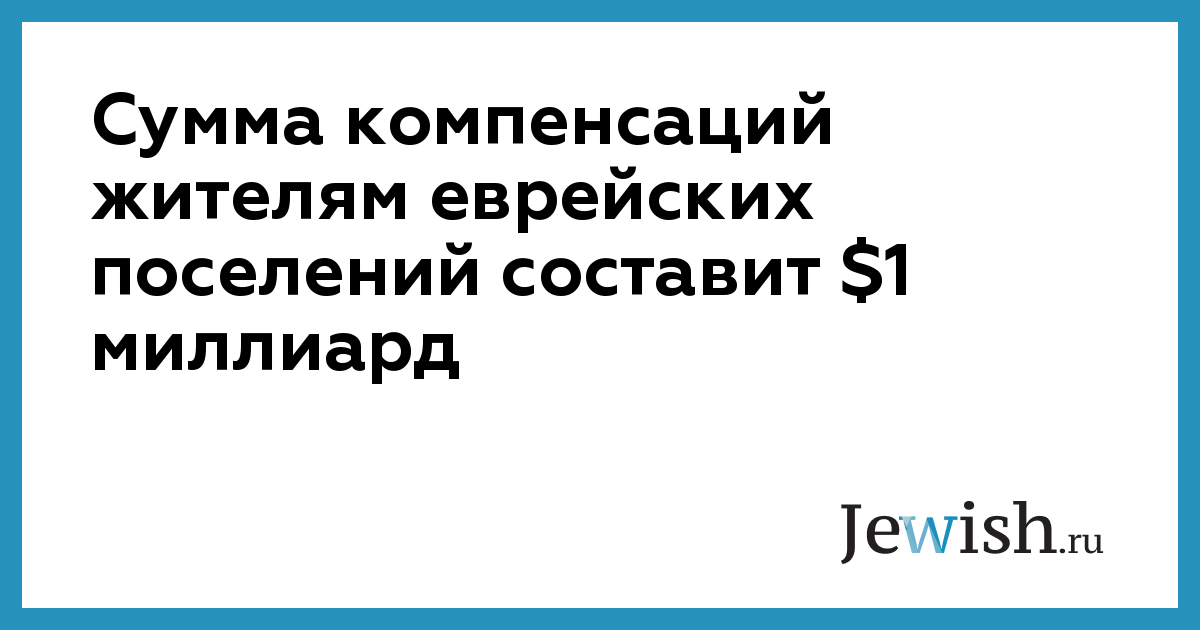 Cумма компенсаций жителям еврейских поселений составит $1 миллиард