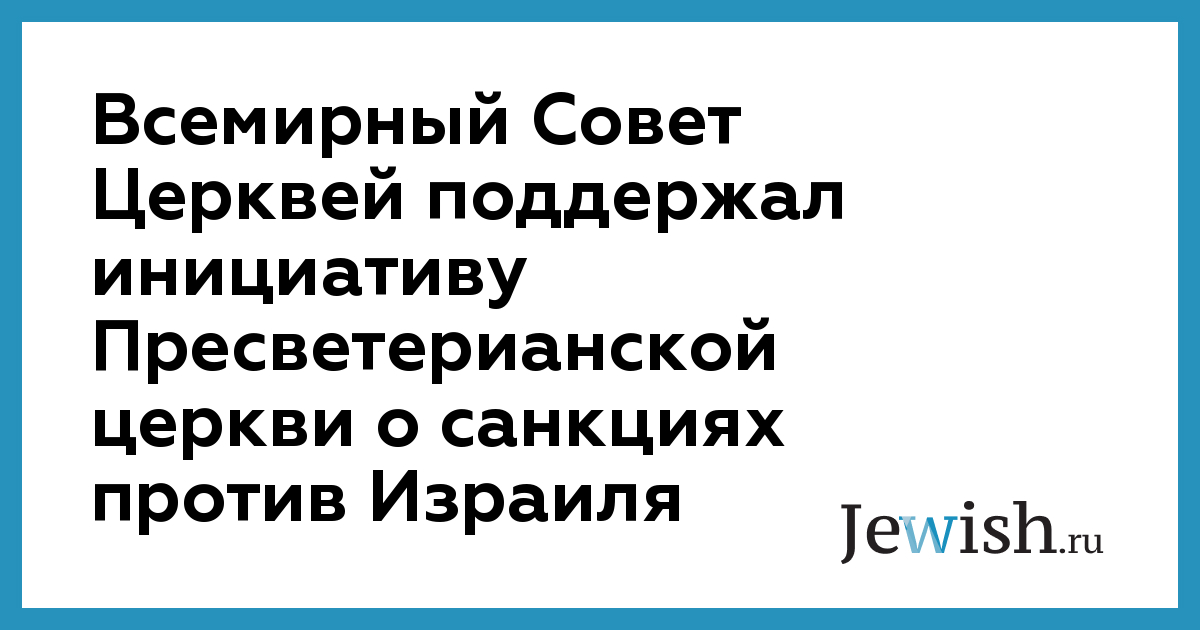Всемирный Совет Церквей поддержал инициативу Пресветерианской церкви о санкциях против Израиля