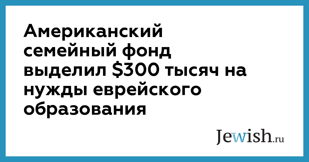 Американский семейный фонд выделил $300 тысяч на нужды еврейского образования