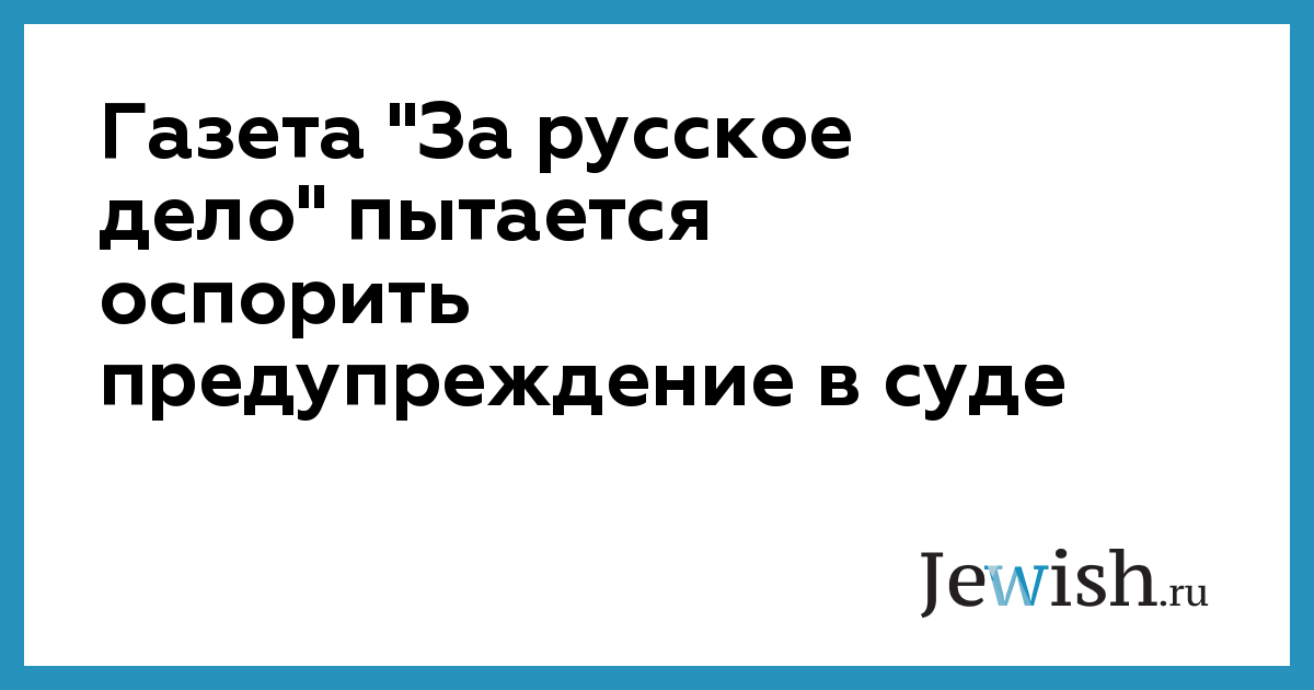 Газета "За русское дело" пытается оспорить предупреждение в суде