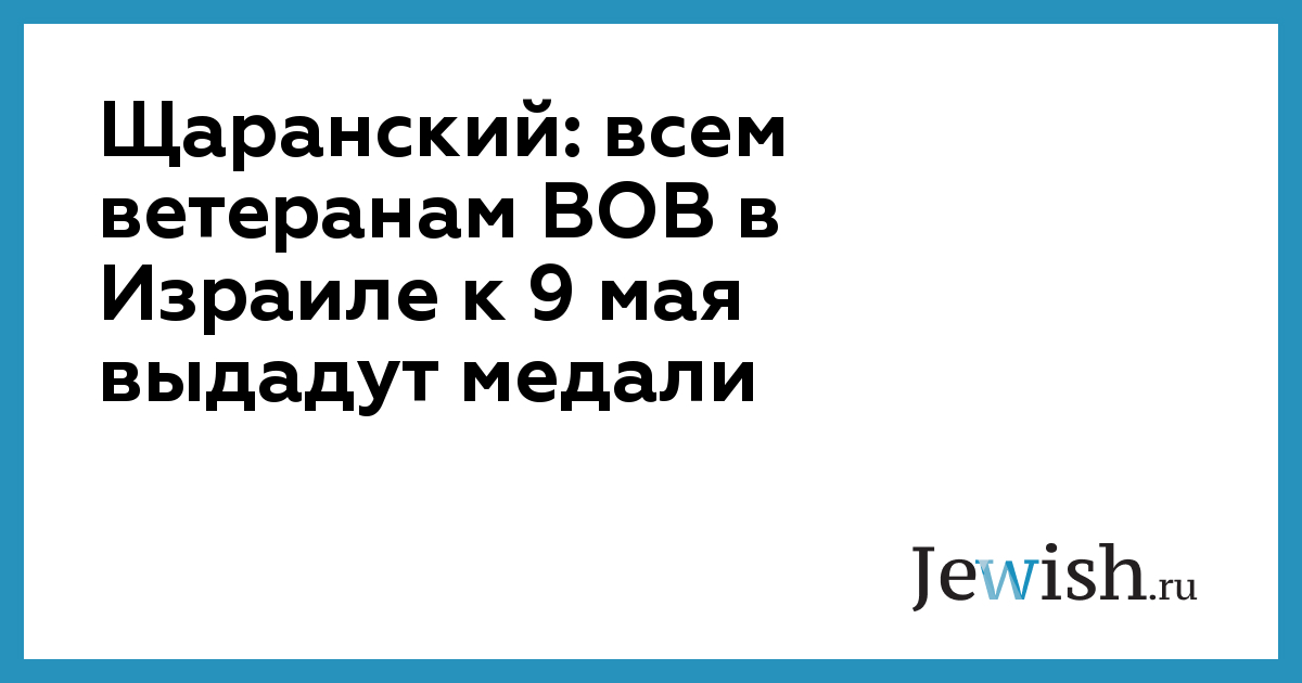 Щаранский: всем ветеранам ВОВ в Израиле к 9 мая выдадут медали