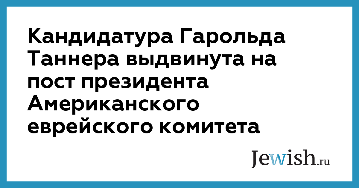 Кандидатура Гарольда Таннера выдвинута на пост президента Американского еврейского комитета