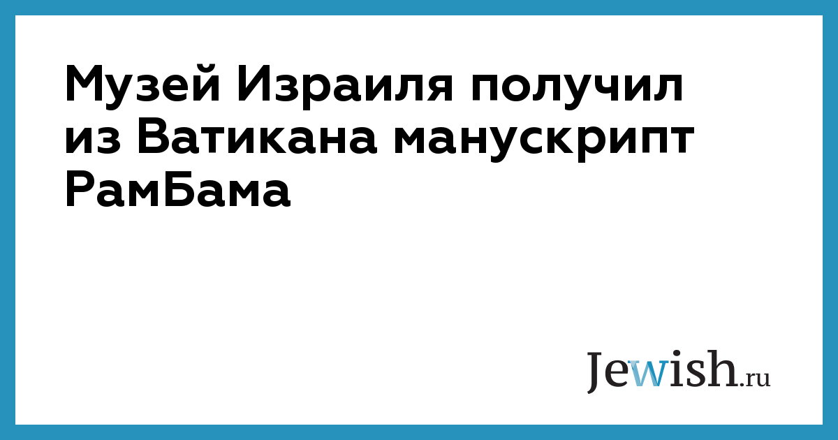 Музей Израиля получил из Ватикана манускрипт РамБама