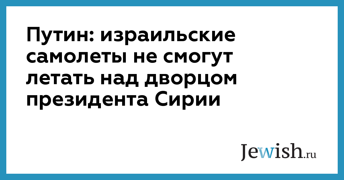 Путин: израильские самолеты не смогут летать над дворцом президента Сирии