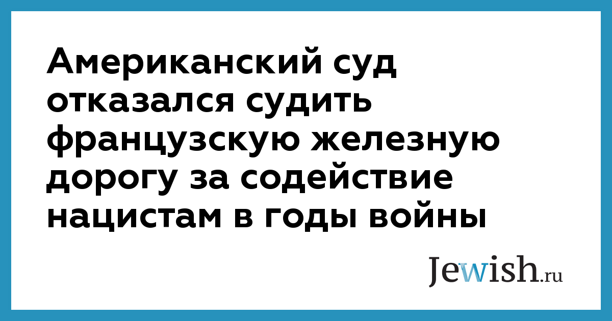 В конце прошлой недели Верховный суд отказался отменить решение суда более низкой инстанции, согласно которому американская юридическая система не имеет права выносить вердикты против компании, принадлежащей другому государству. Напомним, что в период с 1942 по 1944 по французской железной дороге нацисты отправили в лагеря смерти десятки тысяч представителей французской еврейской общины. Из них выжить удалось лишь нескольким процентам.