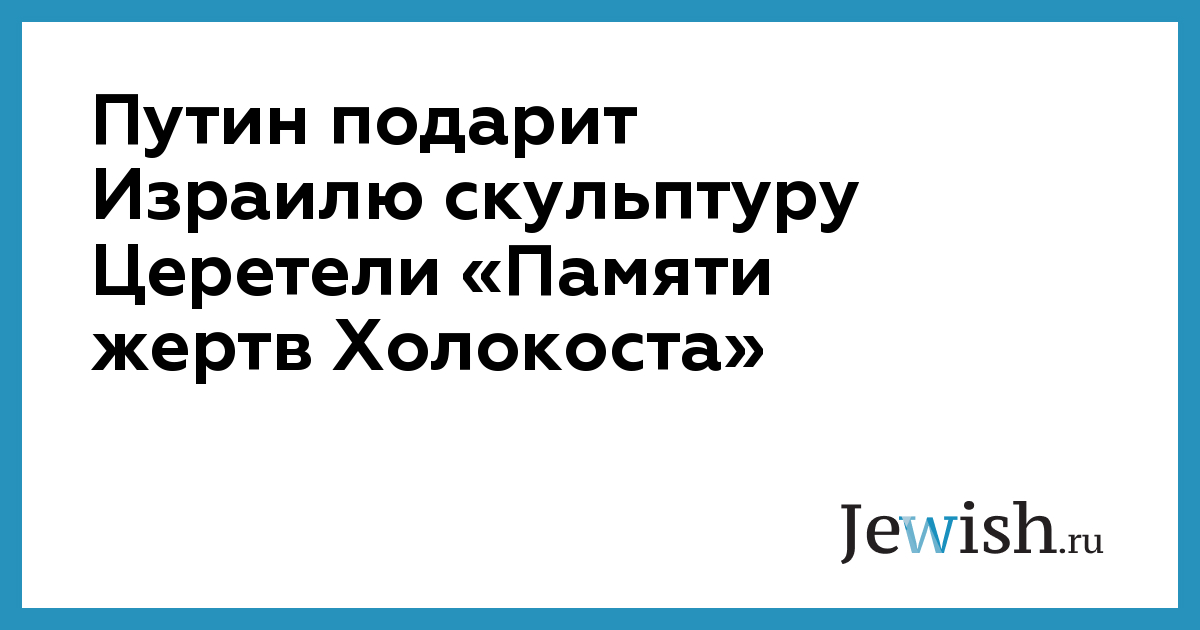 Путин подарит Израилю скульптуру Церетели «Памяти жертв Холокоста»