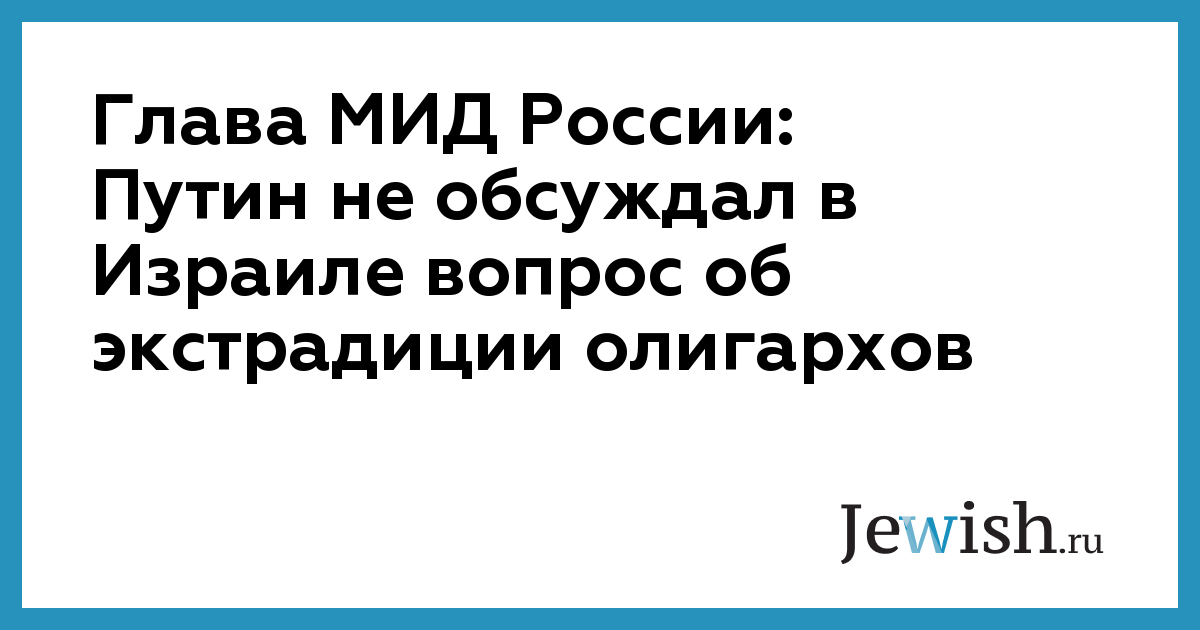 Глава МИД России: Путин не обсуждал в Израиле вопрос об экстрадиции олигархов