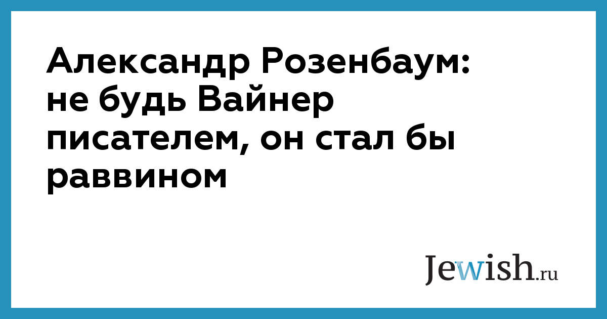 Александр Розенбаум: не будь Вайнер писателем, он стал бы раввином