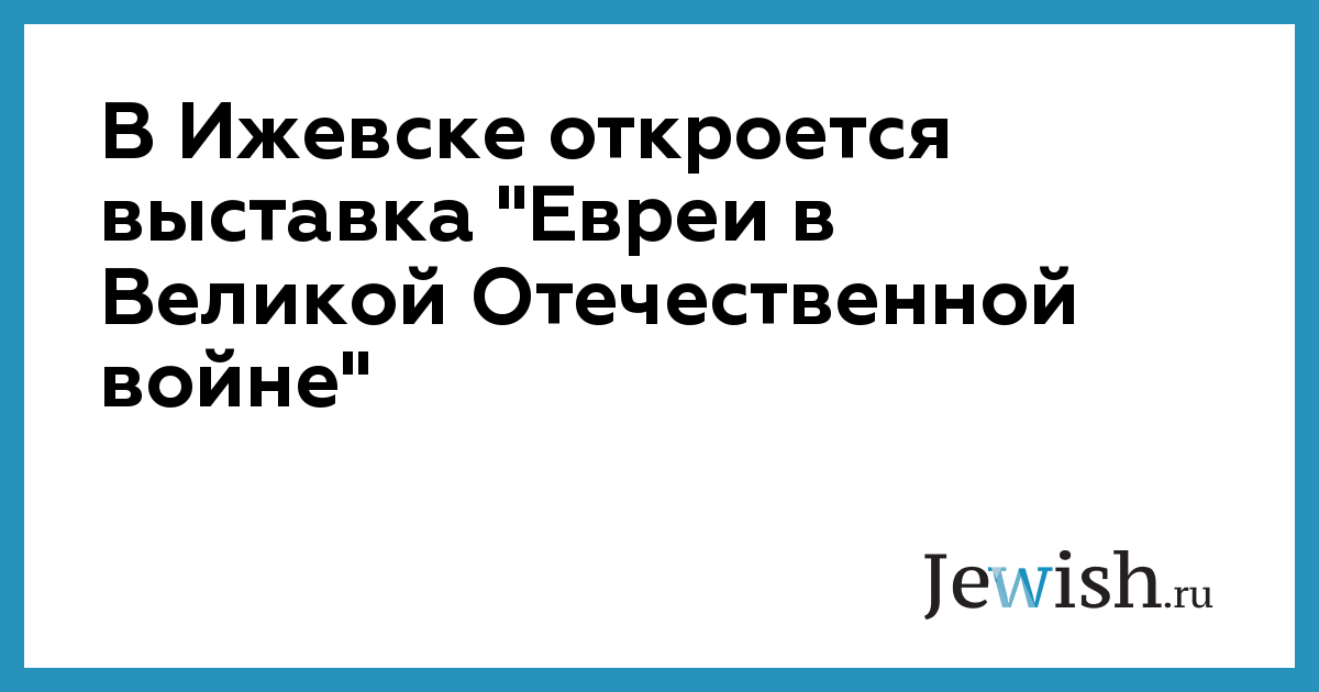 В Ижевске откроется выставка "Евреи в Великой Отечественной войне"