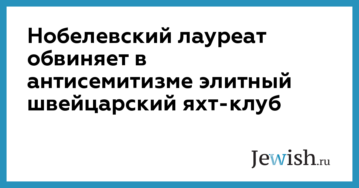 Нобелевский лауреат обвиняет в антисемитизме элитный швейцарский яхт-клуб