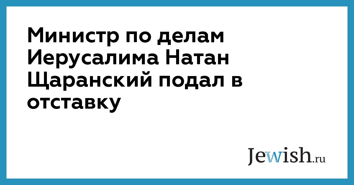 Министр по делам Иерусалима Натан Щаранский подал в отставку