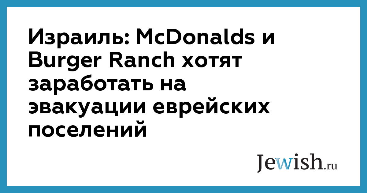 Израиль: McDonalds и Burger Ranch хотят заработать на эвакуации еврейских поселений