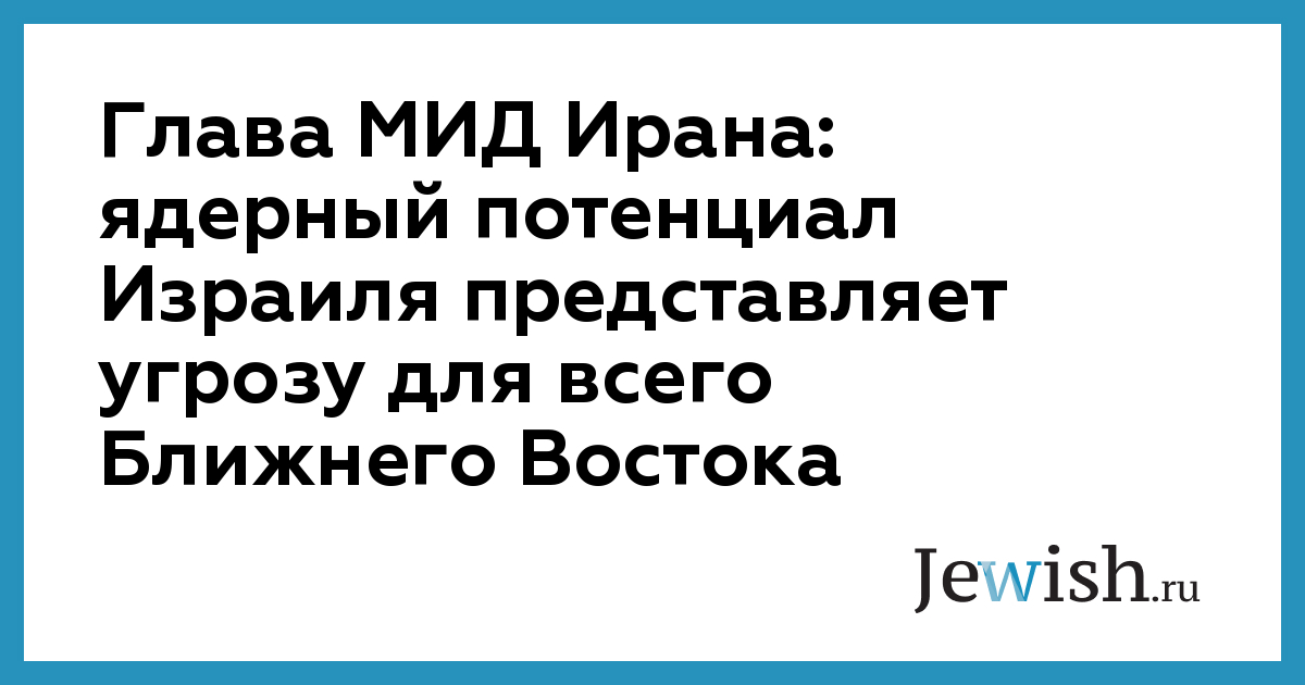 Глава МИД Ирана: ядерный потенциал Израиля представляет угрозу для всего Ближнего Востока