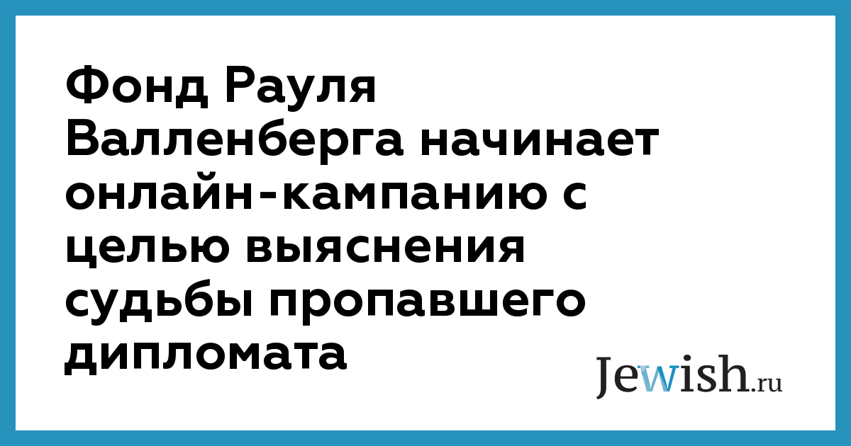 Фонд Рауля Валленберга начинает онлайн-кампанию с целью выяснения судьбы пропавшего дипломата