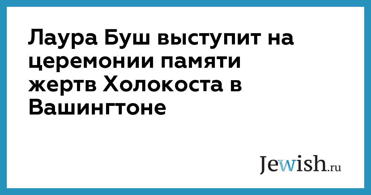 "Первая леди" станет ведущим оратором на церемонии на Капитолийском холме в честь национального Дня памяти жертв Катастрофы, которая состоится в четверг. Кроме Лауры Буш, в митинге примут участие внучка президента Эйзенхауэра Сюзан Эйзенхауэр, посол Израиля в Соединенных Штатах Данни Аялон, глава Мемориального совета памяти Холокоста Фред Зейдман, вице-президент Совета Рут Мандель, представители еврейских организаций и бывшие узники нацизма.