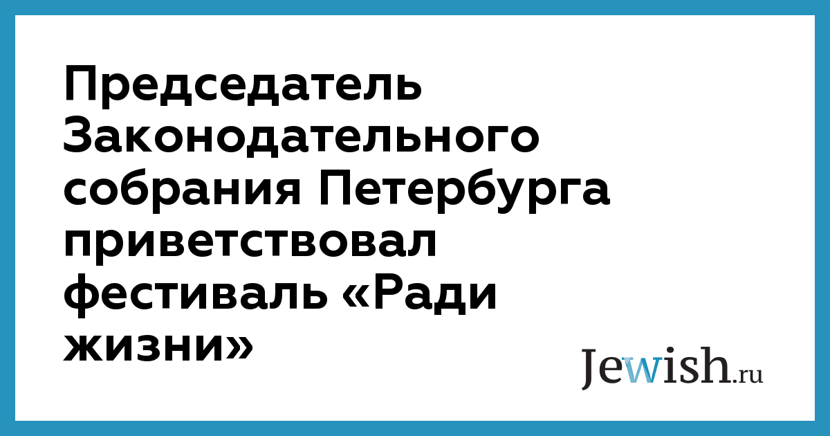 Председатель Законодательного собрания Петербурга приветствовал фестиваль «Ради жизни»