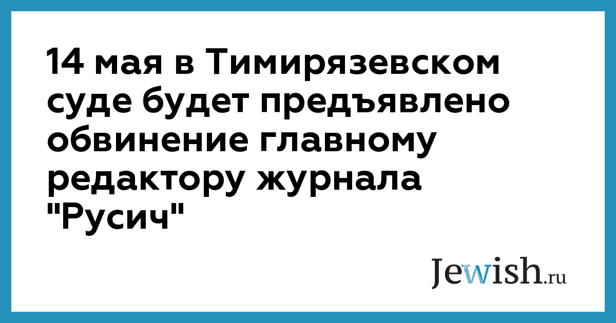 14 мая в Тимирязевском суде будет предъявлено обвинение главному редактору журнала "Русич"