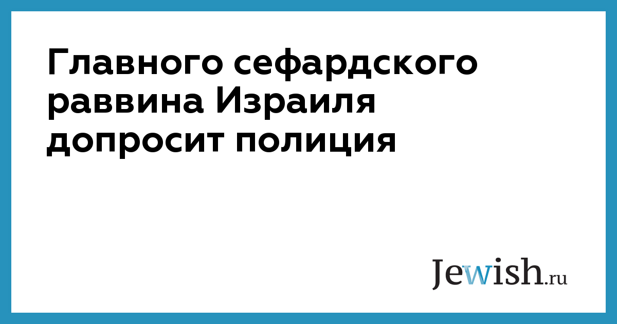 Главного сефардского раввина Израиля допросит полиция