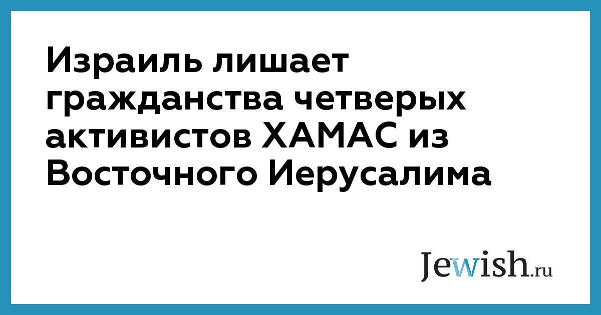 Израиль лишает гражданства четверых активистов ХАМАС из Восточного Иерусалима