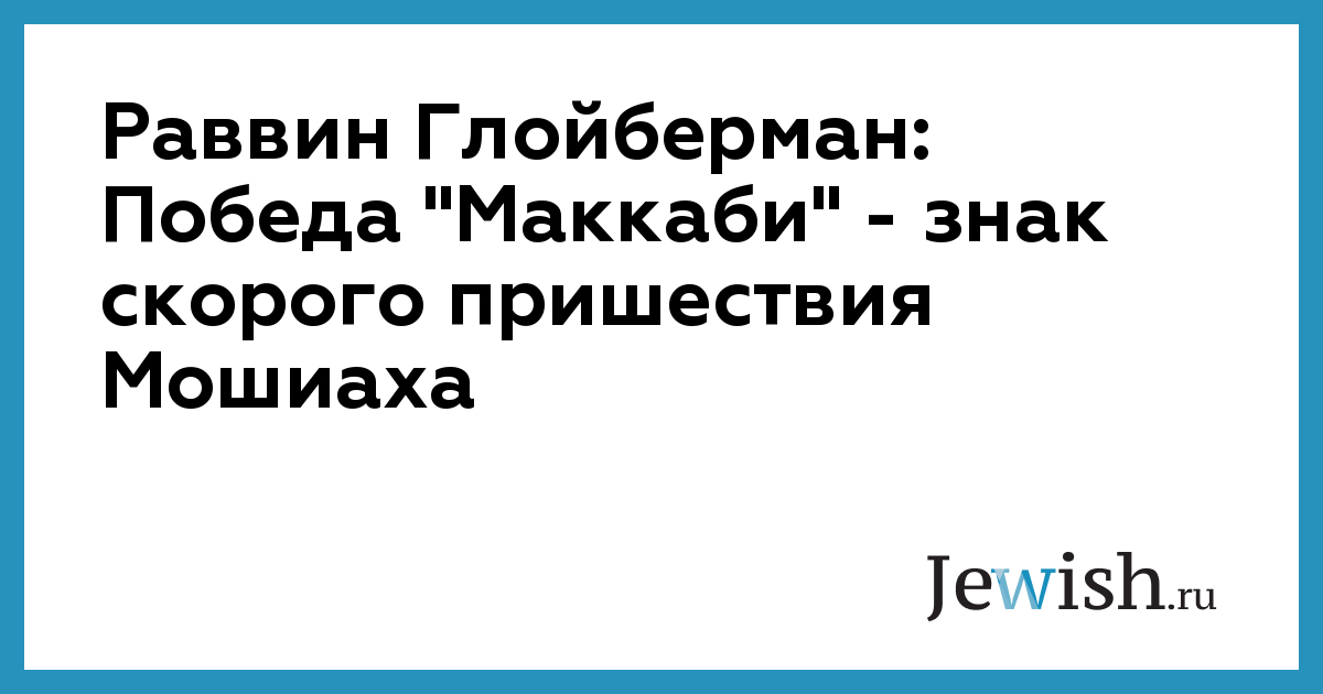 Раввин Глойберман: Победа "Маккаби" — знак скорого пришествия Мошиаха