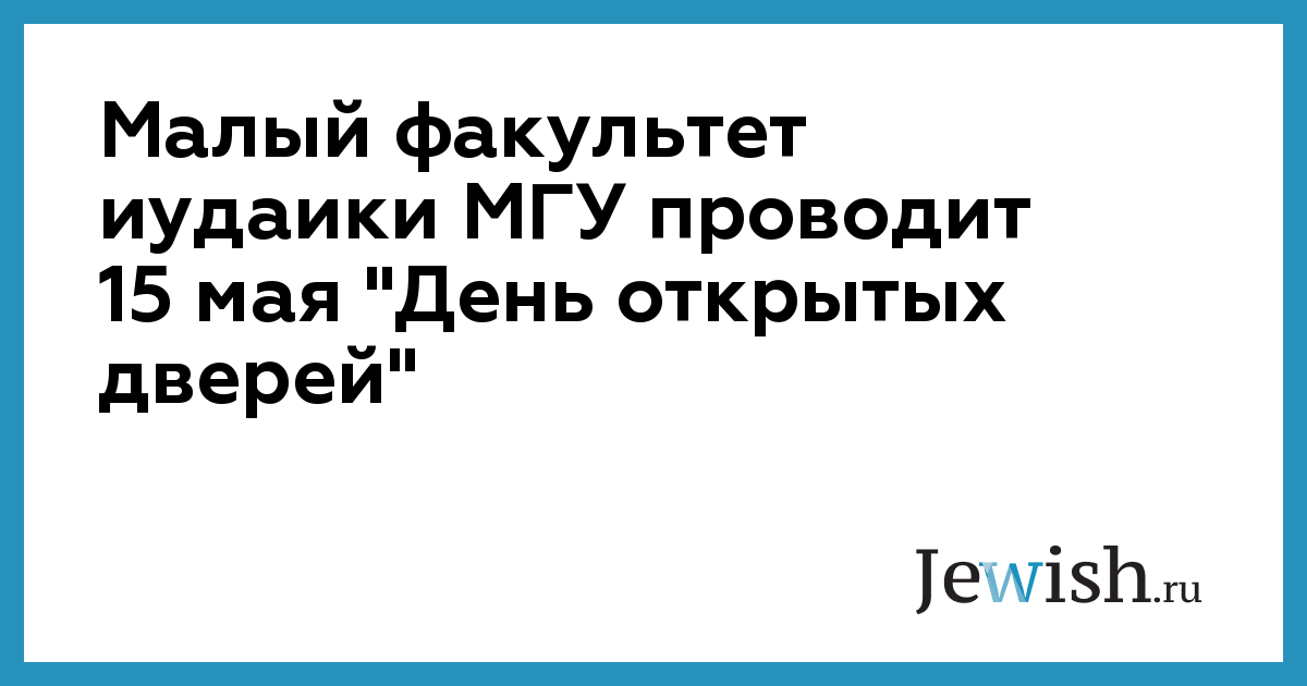 Малый факультет иудаики МГУ проводит 15 мая "День открытых дверей"