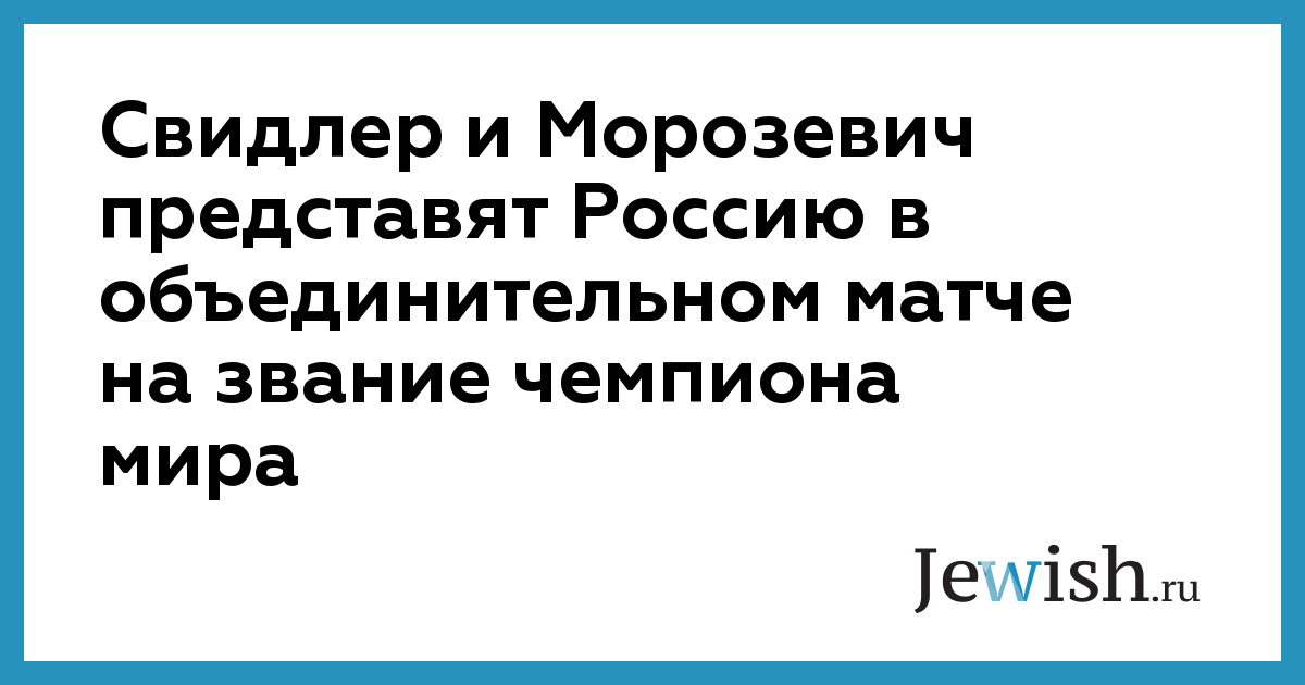 Свидлер и Морозевич представят Россию в объединительном матче на звание чемпиона мира