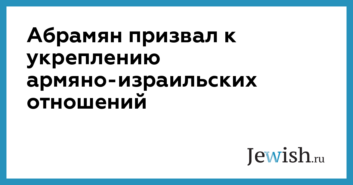 “Армения и Израиль имеют общую часть истории, культурные и национальные традиции обоих народов близки, и это может стать основой для развития двусторонних отношений”, — подчеркнул Абрамян.