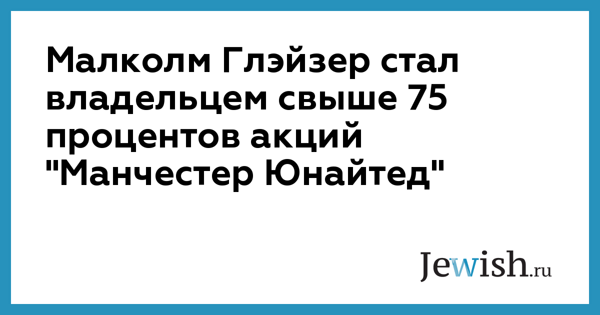 Малколм Глэйзер стал владельцем свыше 75 процентов акций "Манчестер Юнайтед"