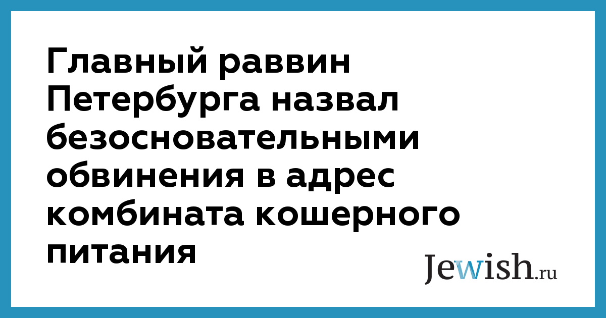Главный раввин Петербурга назвал безосновательными обвинения в адрес комбината кошерного питания