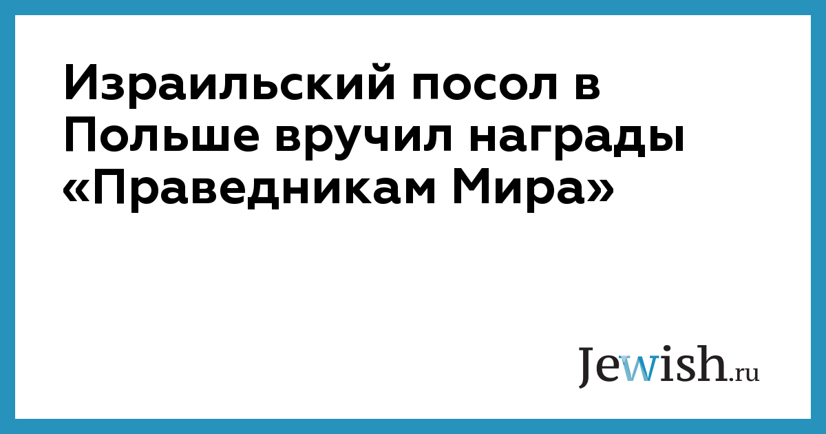 Израильский посол в Польше вручил награды «Праведникам Мира»
