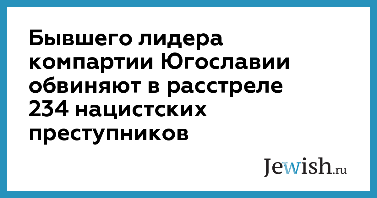 Бывшего лидера компартии Югославии обвиняют в расстреле 234 нацистских преступников