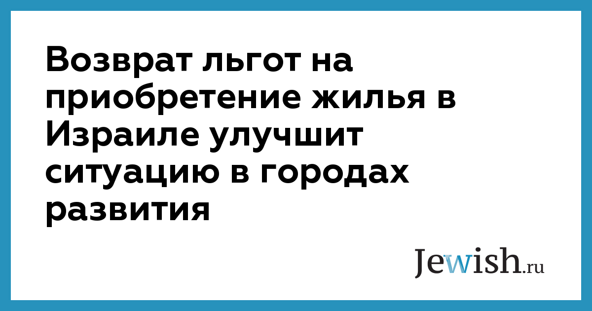 Возврат льгот на приобретение жилья в Израиле улучшит ситуацию в городах развития