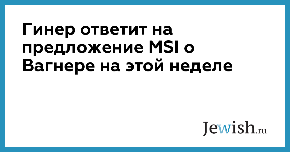 Гинер ответит на предложение MSI о Вагнере на этой неделе