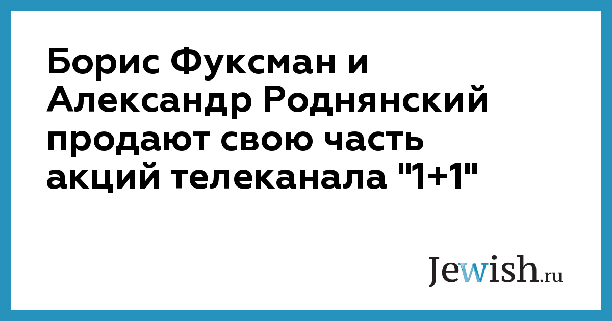 Борис Фуксман и Александр Роднянский продают свою часть акций телеканала "1+1"