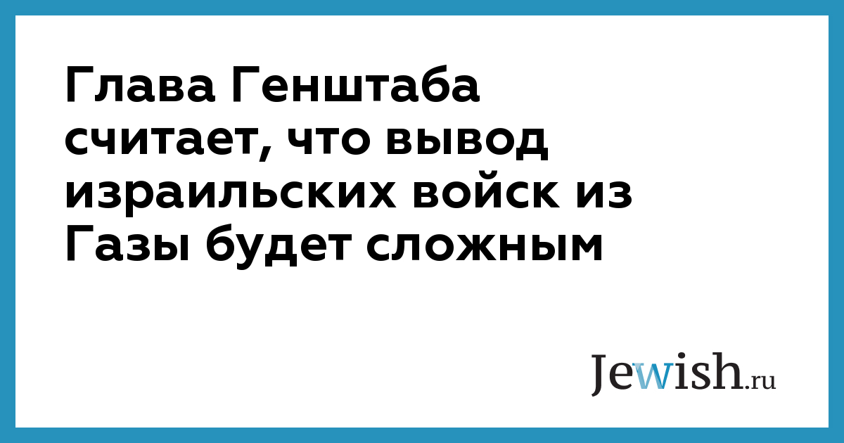 Глава Генштаба считает, что вывод израильских войск из Газы будет сложным
