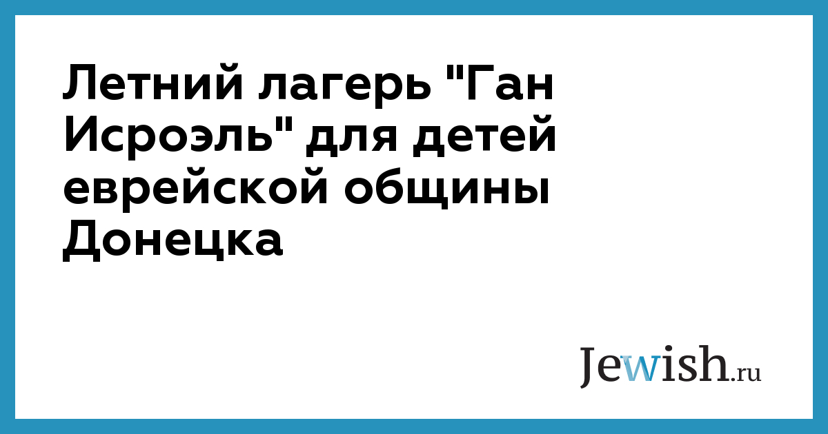 Донецкая областная еврейская община приглашает еврейских детей на отдых в летний лагерь "Лагерь Ган Исроэль", который в этом году будет организован на базе пансионата "Лесной" в заповедном Велико-Анадольском лесу. Организуются отельные группы для детей 8-13 и молодежи 14-20 лет. Женская смена — с 3 по 18 июля. Мужская смена — с 19 по 31 июля.