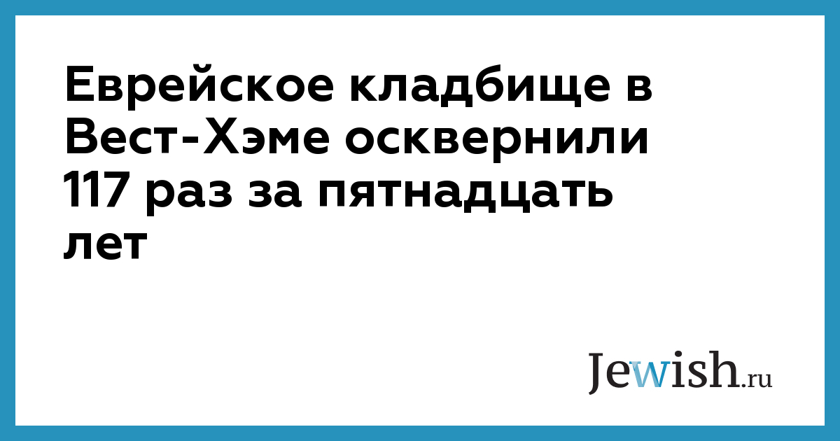 Еврейское кладбище в Вест-Хэме осквернили 117 раз за пятнадцать лет