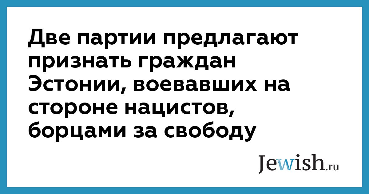 Эстонские оппозиционные партии Союз Отечества и Республика внесли в парламент страны проект постановления, по которому граждан Эстонии, воевавших во Второй мировой войне против "советской оккупации" предлагается признать борцами за свободу.