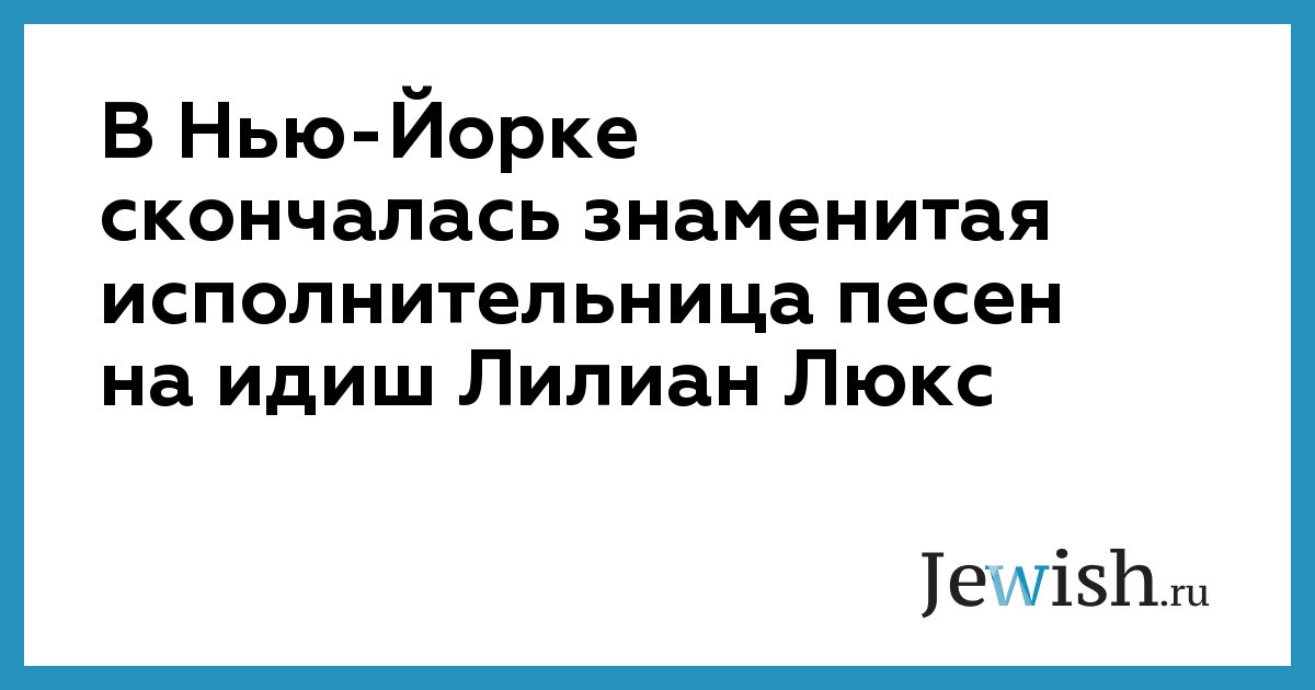 В Нью-Йорке скончалась знаменитая исполнительница песен на идиш Лилиан Люкс