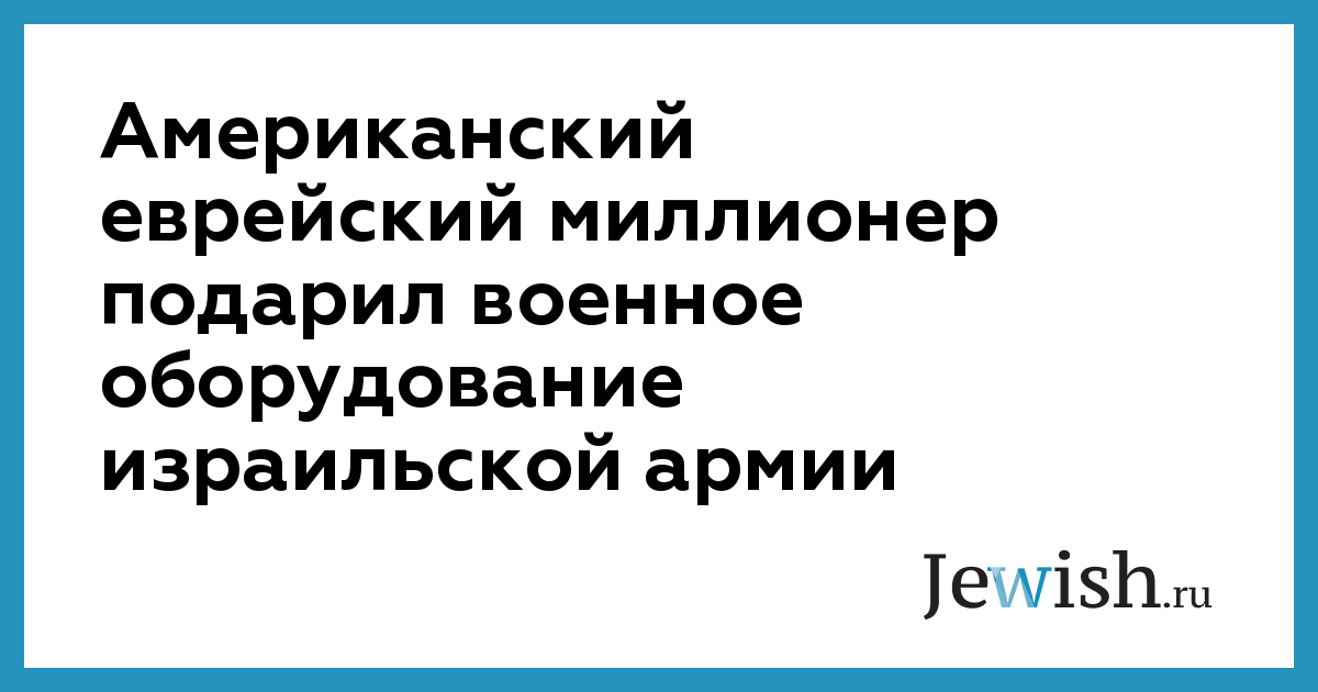 Американский еврейский миллионер подарил военное оборудование израильской армии