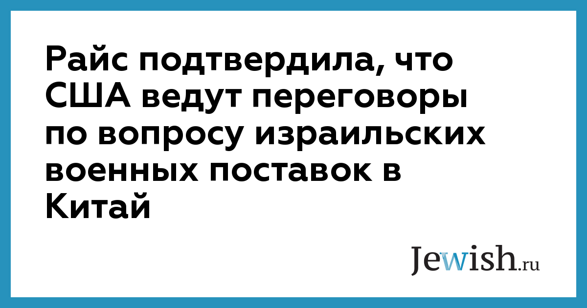 Райс подтвердила, что США ведут переговоры по вопросу израильских военных поставок в Китай