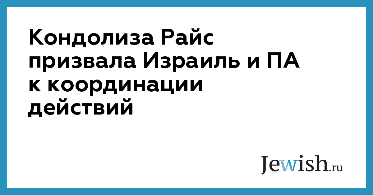 Кондолиза Райс призвала Израиль и ПА к координации действий