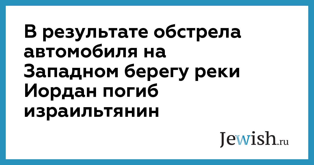В результате обстрела автомобиля на Западном берегу реки Иордан погиб израильтянин