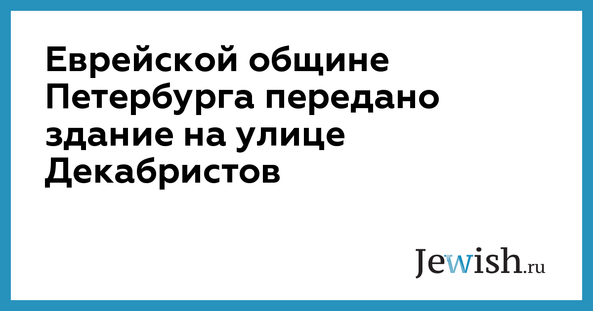 Еврейской общине Петербурга передано здание на улице Декабристов