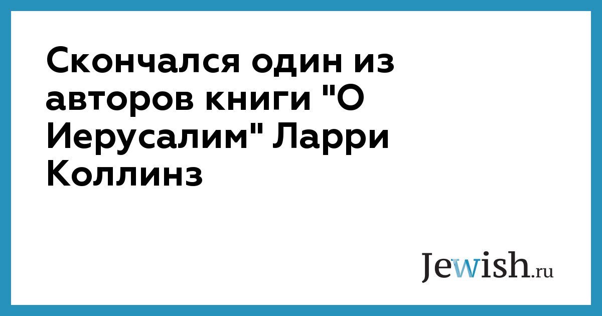 Скончался один из авторов книги "О Иерусалим" Ларри Коллинз